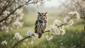 白花枝頭的小貓頭鷹