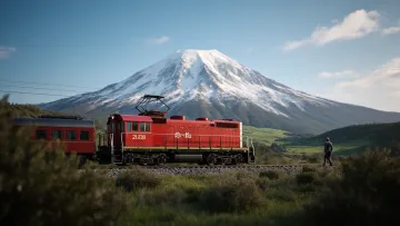 紅色列車掠過雪山