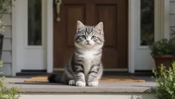 門前小貓把關 引來鄰里微笑